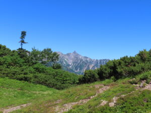 北アルプスの徳沢から蝶ヶ岳へ向かう途中にある山頂