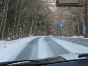 松本から新穂高温泉までの道中、雪があったのは約50mくらいで、他はありませんでした。