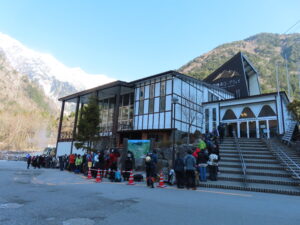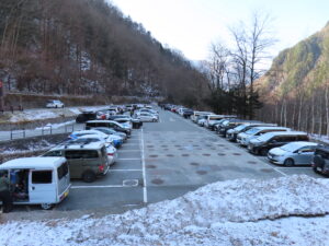 冬季は鍋平エリア(第二ロープウェイ乗り場付近)の道路は封鎖とのことで、車は新穂高温泉エリアに止める必要があります。
