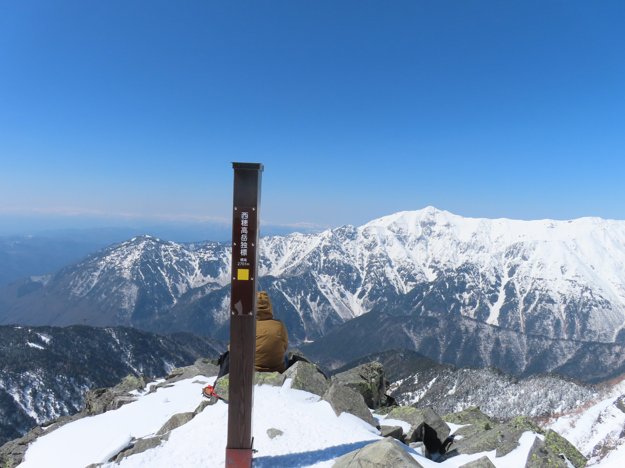 西穂高岳はもちろん目の前に笠ヶ岳、遠くに槍ヶ岳も見えます