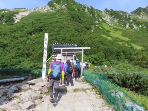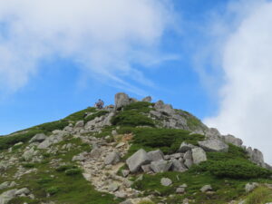荷物整理もそこそこに木曾駒ケ岳山頂に向かい出発します。