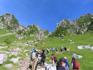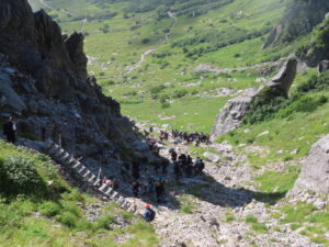 乗越浄土までの登りは一般観光客もおり混み合います。